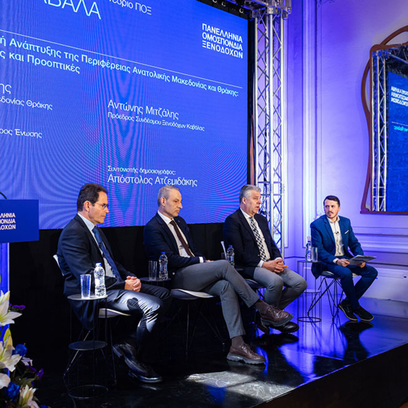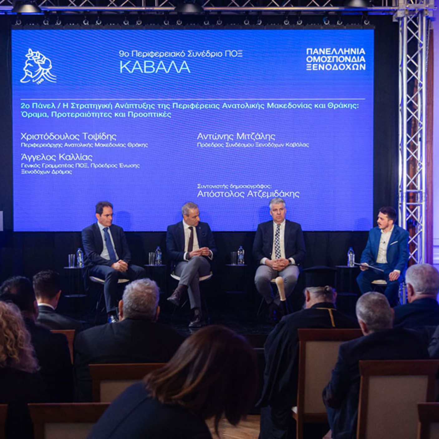 Στο πάνελ της συζήτησης συμμετείχαν επίσης ο Πρόεδρος των Ξενοδόχων Δράμας, κ. Άγγελος Καλλίας και ο πρόεδρος των Ξενοδόχων Καβάλας κ. Αντώνης Μιτζάλης, υπό τον συντονισμό του δημοσιογράφου κ. Απόστολου Αντζεμιδάκη. Παρόντες επίσης στην διαδικασία διαλόγου για τα σημαντικά θέματα του τουρισμού, ο πρόεδρος της ΠΟΞ κ. Γιάννης Χατζής και τα μέλη της διοίκησης της.
